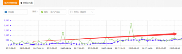网店代运营坚持用低出价,高溢价的方式来操作直通车,直通车流量以及投产都逐渐上涨。尤其到了十月份,直通车效果明显比之前上升了一个阶梯,这期间除了不断的优化直通车本身外,还要结合客服反映的问题优化店铺内功等。